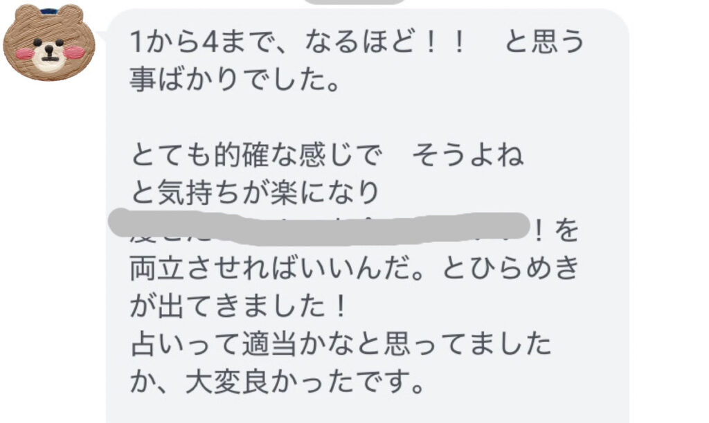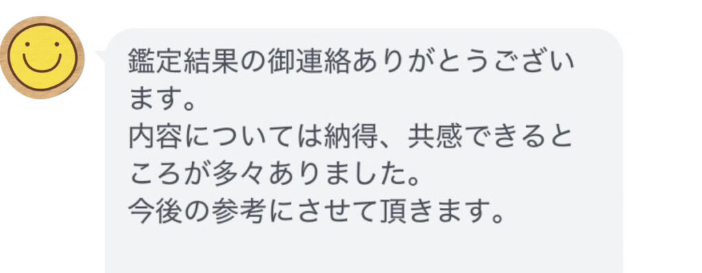 登録後、メッセージに従い、トーク画面に「鑑定希望」と送っていただくだけでOKです。